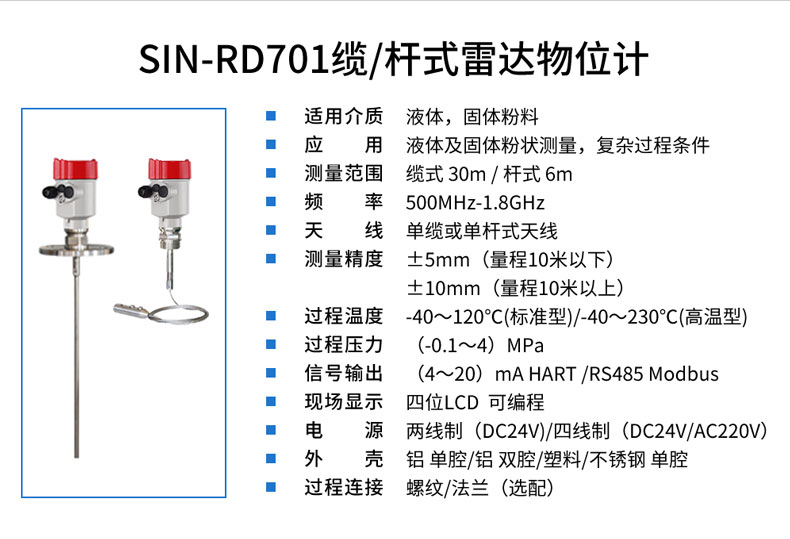 當(dāng)前位置: 首頁 > 雷達(dá)液位計(jì) → 聯(lián)測SIN-RD701纜/桿式雷達(dá)物位計(jì) →